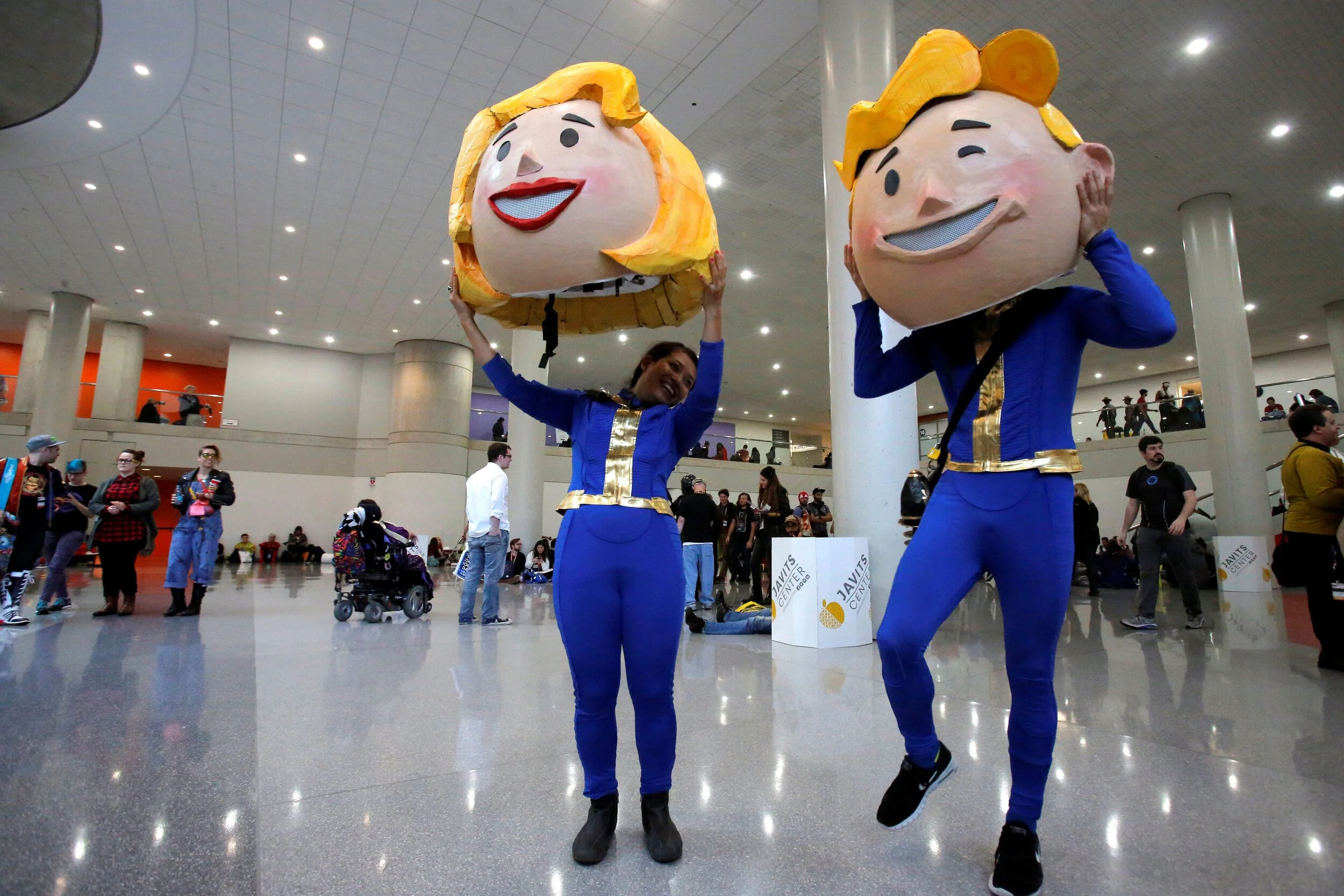So when it came time to think of my one and only cosplay outfit for Comic-Con, I decided I had to be Vault boy bobblehead, and since it would be my wife’s first comic con debut we also brought Vault Girl to life too.